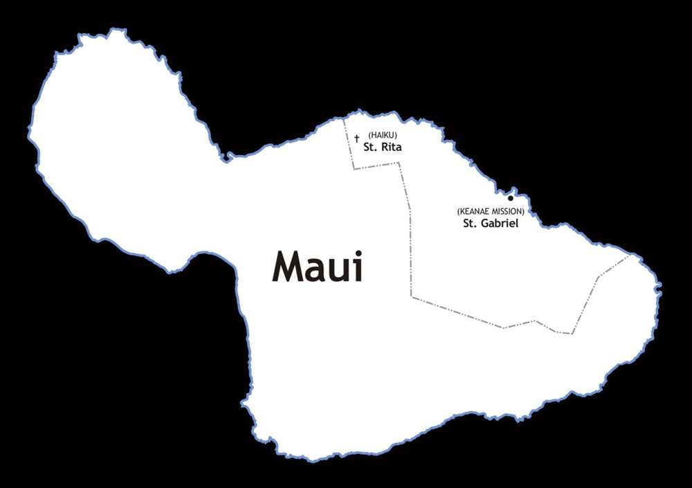 St. Rita was built in the 1920s by Sacred Hearts Father Jules Verhaeghe. It was first a mission of Holy Rosary and then of St. Joseph, Makawao. It was elevated to parish status in 1950.