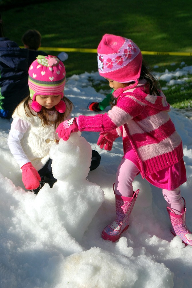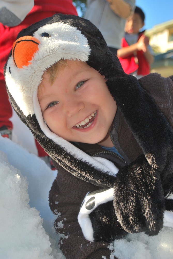 Minnesota wasn’t the only place experiencing flurries last week. Ten tons of “snow” turned Star of the Sea Early Learning Center in Waialae-Kahala into a winter wonderland on Jan. 11. Pictured is “penguin” Joseph Scanlon, right, having a cool time, and others making a snow person. Pacific Ocean Producers provided the icy stuff. Amazon Construction trucking delivered it. (HCH photos by Bernadette Ranney)