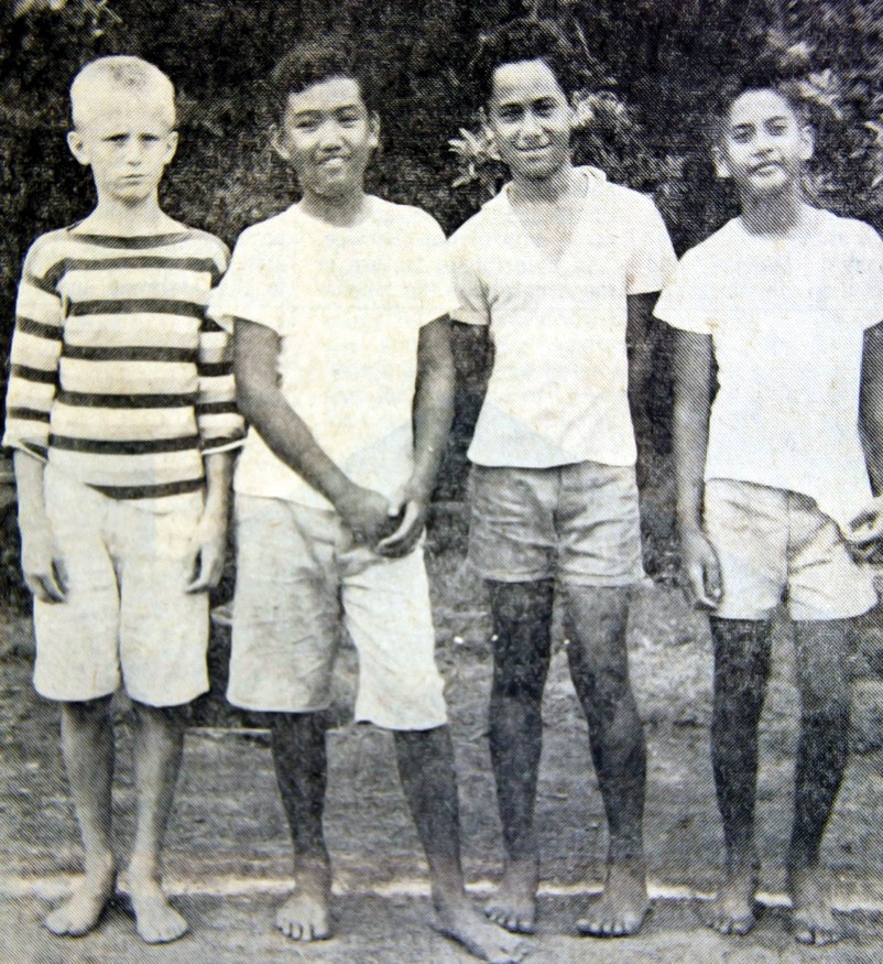 These fifth and sixth graders proved that they have the makings of future track stars as they won in last week’s CYO Track Meet. The above four boys from Cathedral School won the 440 yard relay dash. They are (left to right) Patrick Fischer, Craig Pagaduan, Robert Kaslausky, and Robert Akana. Robert Akana won also the 50, 100, 200, broad jump and high jump. Patrick Fischer won the 440 yard dash.