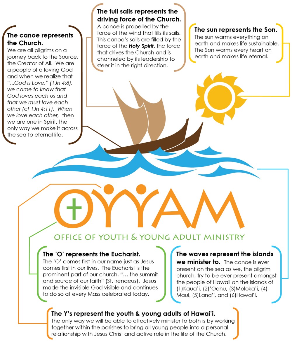 Working with Craig Hirasaki from the design firm ConnectWorks Group Hawaii, the Office of Youth and Young Adult Ministry recently unveiled its new logo below. It is a visual symbol of their mission of evangelization for the Islands’ next generation of Catholics.