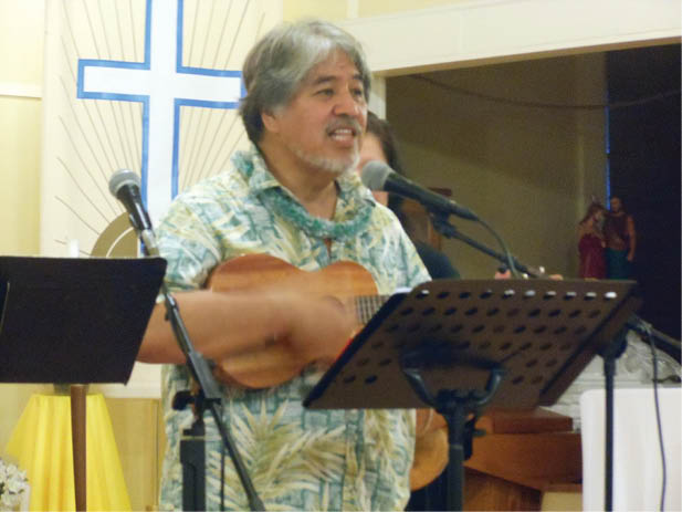 Maryknoll Sister Yoo Soo Kim performed original liturgical dances to a number of songs. Bobby Fisher wowed the crowd with his guitar prowess. The Big Island’s Paulette Ching, known for singing liturgical hymns, brought the house down with a rousing gospel-jazz rendition of a new song from Fisher’s latest CD.