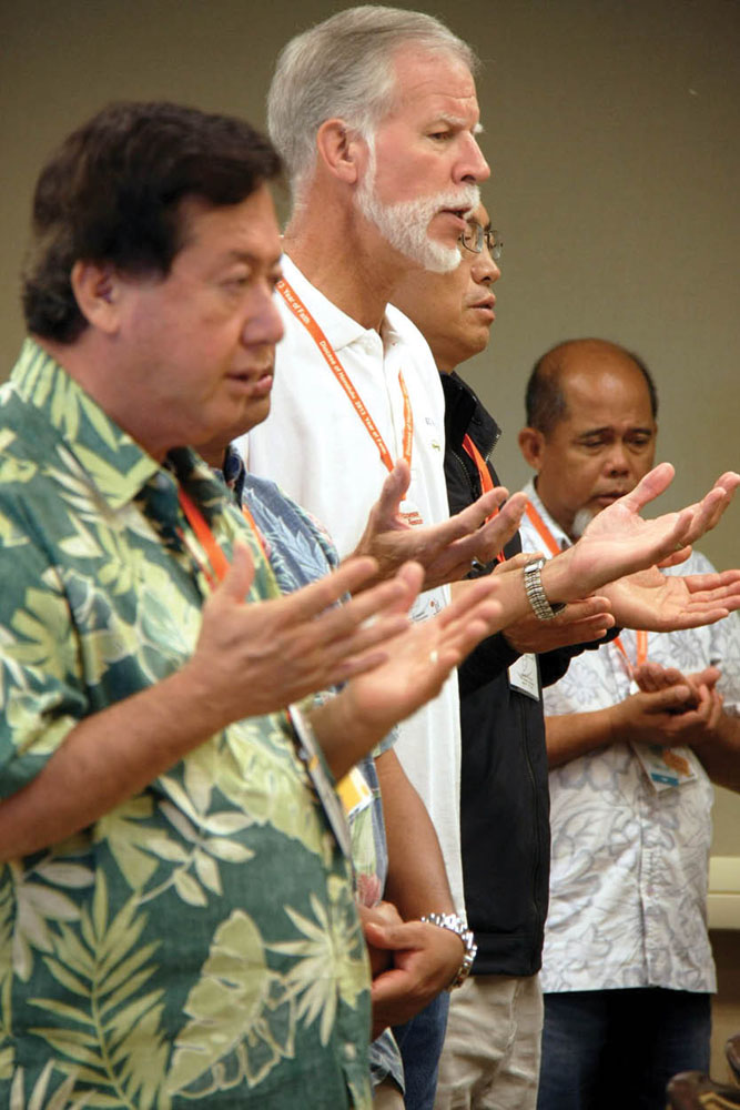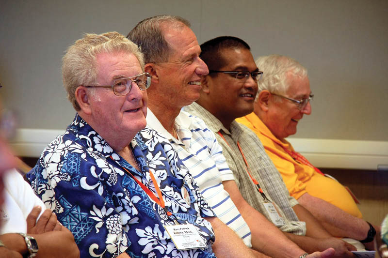 More than 100 of Hawaii’s active and retired priests spent a week at Turtle Bay Resort on the North Shore of Oahu gathering for fellowship, prayer and personal development sessions during the diocese’s annual Priests’ Convocation, May 13-17. They joined Bishop Larry Silva, third row fifth from right, for a group photo on May 15.