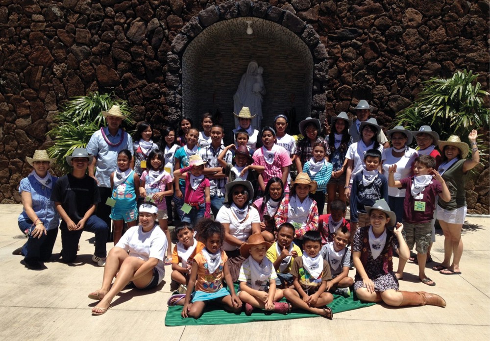 Our Lady of Good Counsel Parish’s “SonWest Roundup,” a cowboy-themed Vacation Bible School July 15-19, taught lessons about God’s ultimate plan, ultimate power, ultimate rescue, ultimate trust and, most importantly, his ultimate love. Twenty-four students in grades one through six learned about our Lord through Bible stories, dance, games and crafts. Even the snacks tied into each day’s lesson. Yup, that’s the pastor Father Khanh Hoang in the back left with a cowboy hat! (Photo courtesy of Laurie Munoz)