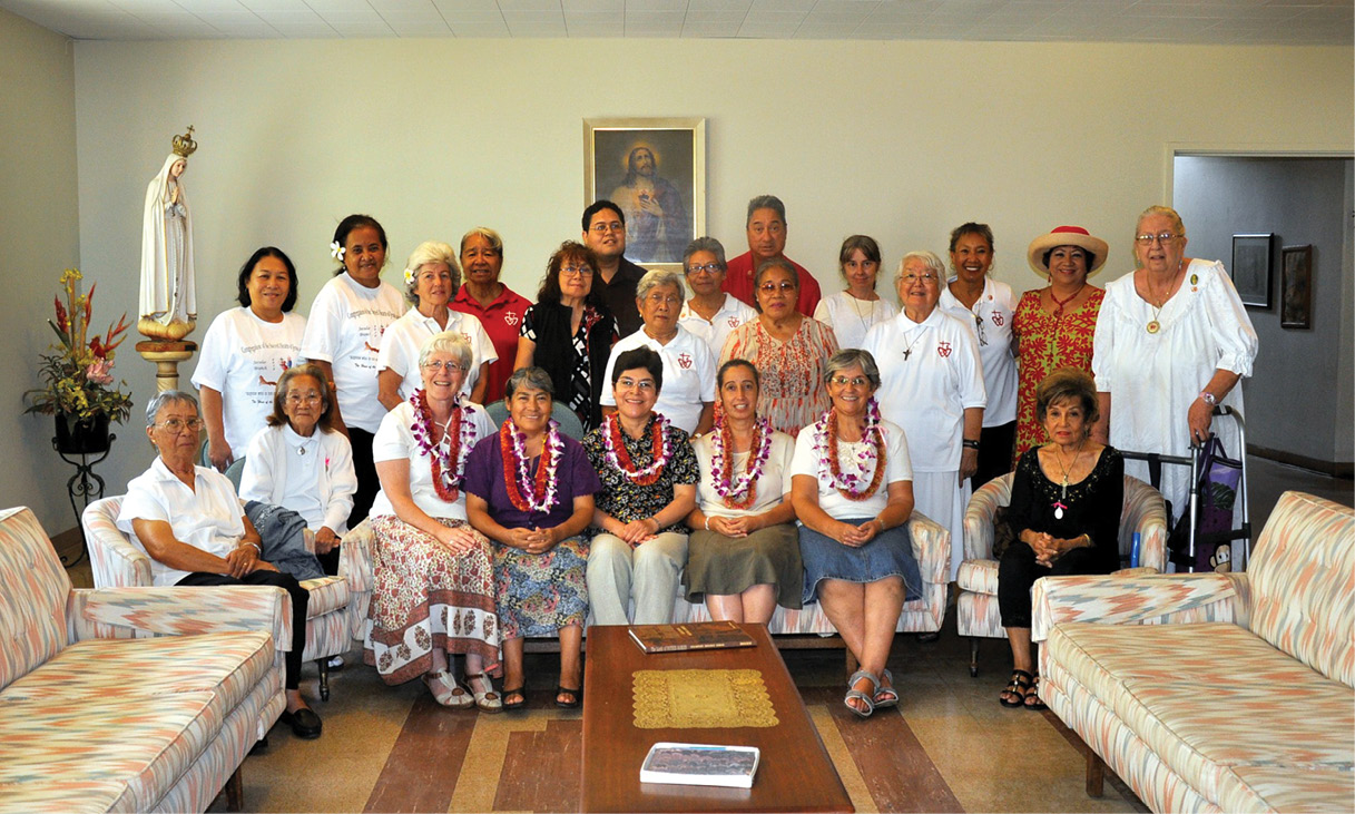 The mother general of the Sacred Hearts Sisters, visiting from Rome with the congregation’s four councilors, were welcomed by Hawaii’s Sacred Hearts Associates and secular branch at the Regina Pacis Convent in Kaimuki on Sept. 29. A very nice reception was enjoyed by all. (Photo courtesy of Linda Jose)