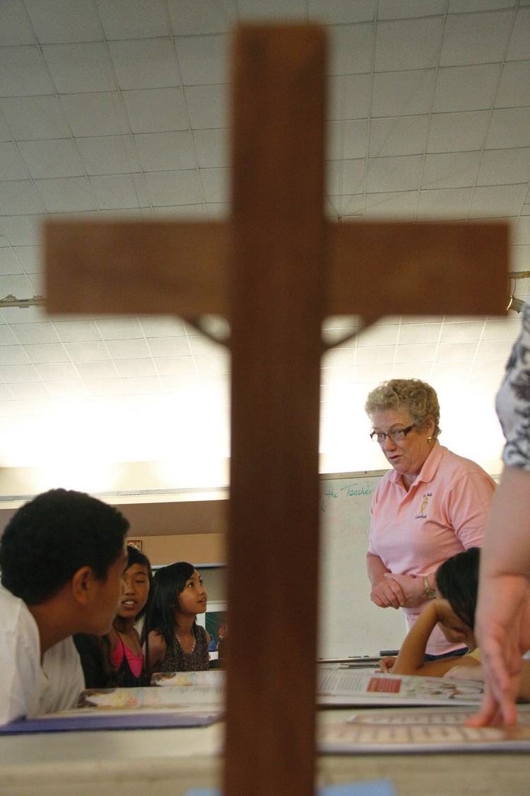 Catechist Lana Vargas, right, teaches young Catholics at St. Jude Church in Kapolei, Oct. 20. (HCH photo | Darlene Dela Cruz)
