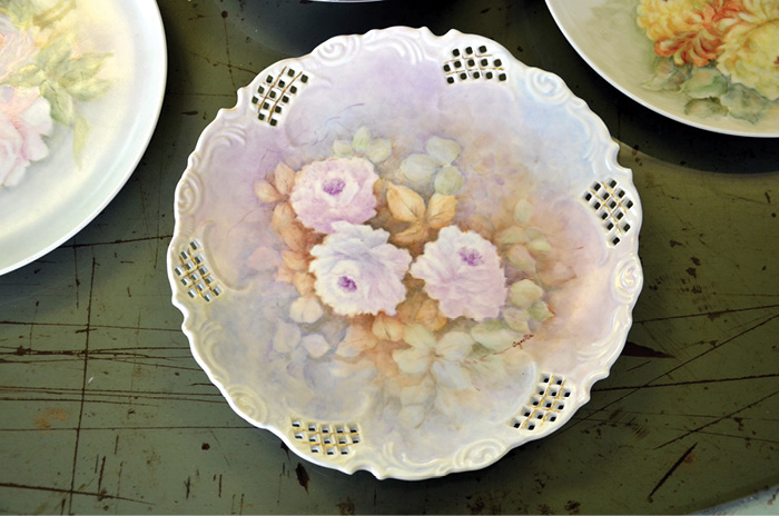 A porcelain plate painted by Sister Agnella Iu sits on the Carmelites’ art studio table. (Photo by Bernadette Ranney)