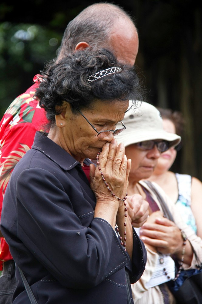 More than 70 faithful gathered at Thomas Square park in Honolulu Oct. 13 for the 7th annual public rosary program. That afternoon, participants held a procession and coronation of a statue of the Blessed Mother, as well as prayer of the Divine Mercy Chaplet and Most Holy Rosary. October in the Catholic Church is dedicated to the Marian devotion. (HCH photos | Darlene Dela Cruz)