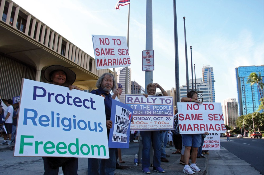 Organized mostly by churches but moved by their own personal convictions, thousands of Hawaii citizens opposing same-sex marriage have showed up at rallies and Capitol hearings, delivered opinions in written testimony, called and emailed their lawmakers and joined in postcard campaigns.