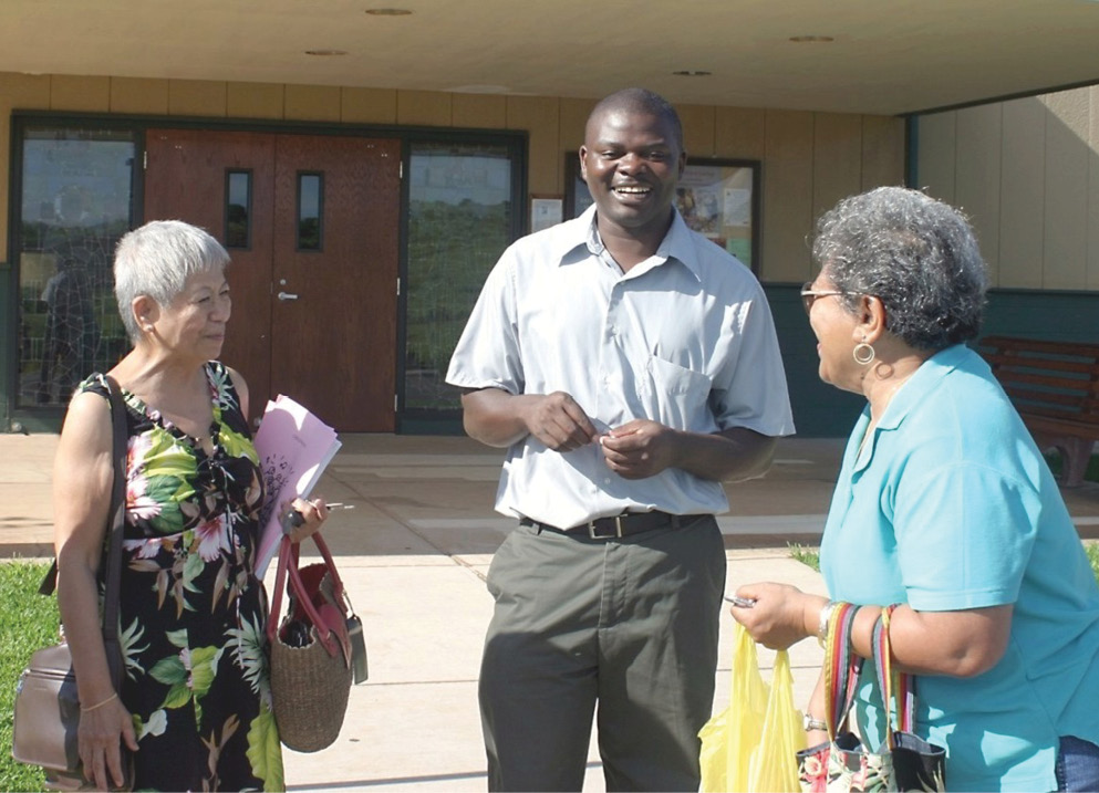 Father Mooya said his biggest challenge was being far from home. When he first came to Hawaii he was surprised at how far away it was, a two-day trip from Zambia. He tried to get home every two years and also kept in touch with his family by phone and email.