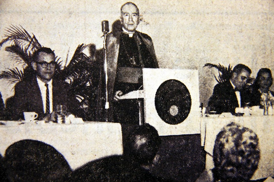 The Most Reverend James J. Sweeney, Bishop of Honolulu, spoke on the Vatican Council at the Meet-the-Bishop Banquet sponsored by the Oahu Council of Holy Name Societies at the Ala Moana Banquet Hall.