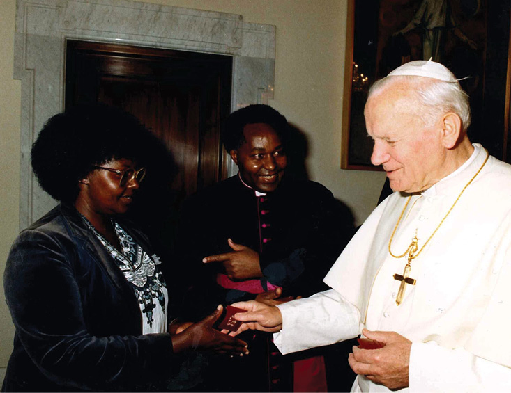 On another occasion in April 1990, pictured above, I introduced my sister Stellamaris Mutua to the Holy Father.