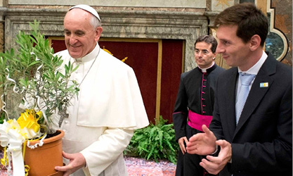 Pope Francis has met several soccer stars during his pontificate, including the captain of the Argentina national team, shown in this photo. What is the name of this soccer player?