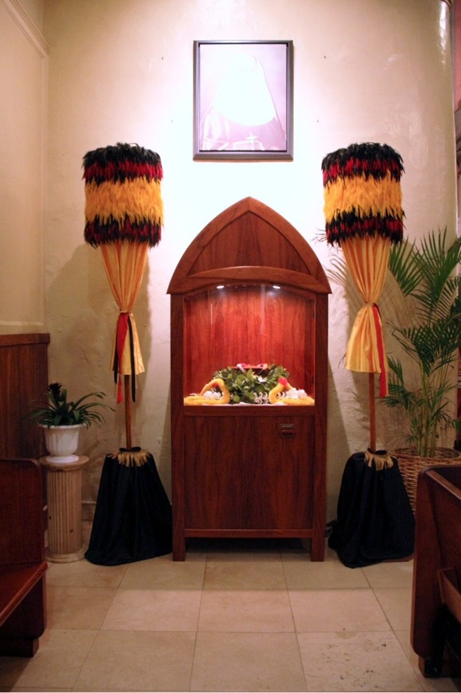 After Mass, the box will be placed in the koa display cabinet and veneration will follow until evening prayers at 4:30 p.m.