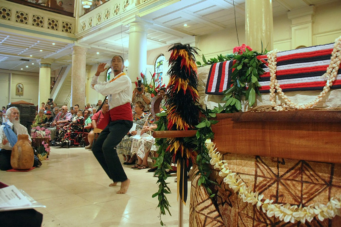 Most of the music for the prayer service and Mass incorporated traditional Hawaiian melodies.
