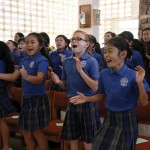 Students at Our Lady of Good Counsel School in Pearl City sing loud and proud during a special liturgy marking the school’s 50th anniversary, Sept. 11. Bishop Larry Silva celebrated the Mass at Our Lady of Good Counsel parish for the school’s students, staff and community supporters. (HCH Photo | Darlene Dela Cruz)