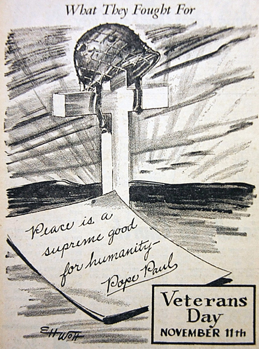 Editorial cartoon honoring veterans in the Nov. 6, 1964, Hawaii Catholic Herald.