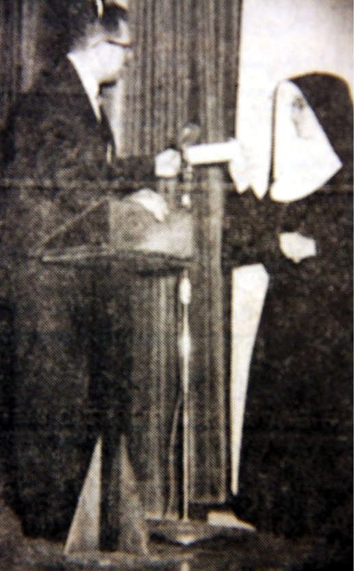 Right, Mr. John Savage, president of St. Francis Convent School Parent Teacher Guild presents a check for two thousand dollars to the principal, Sister M. Bonaventure, O.S.F. The money was raised by the parents and it is earmarked for the building fund.