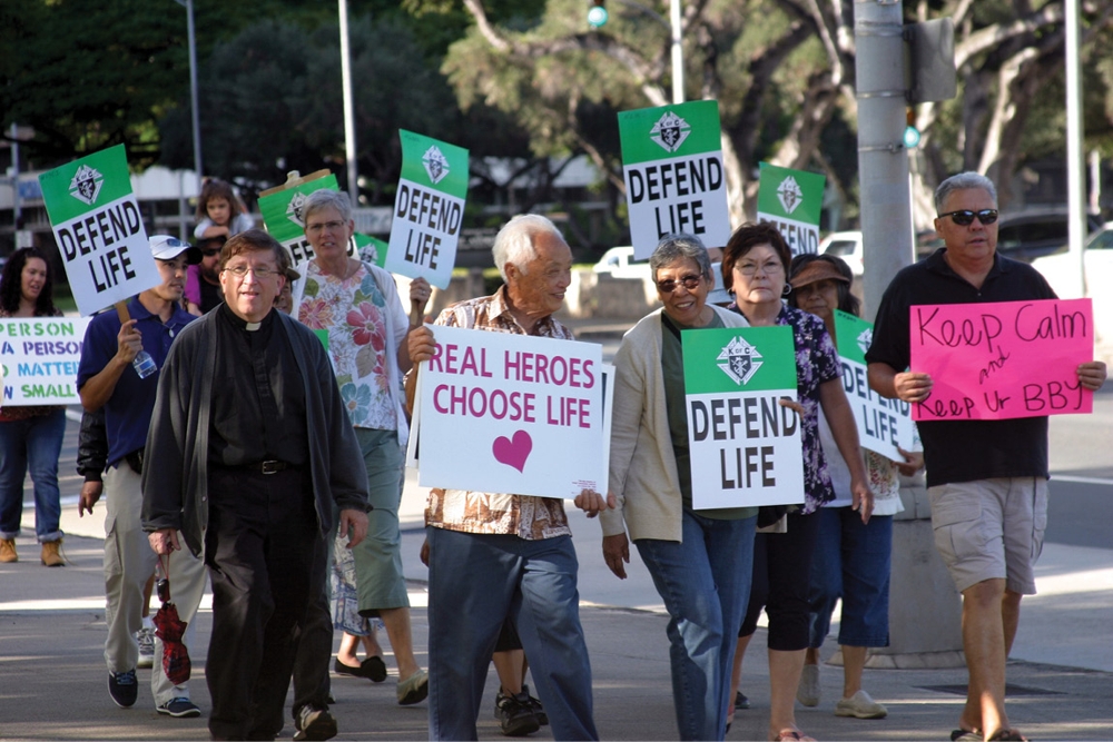 A bright clear day greeted the 300 people who gathered at the State Capitol Jan. 24 for Hawaii’s 42nd annual Rally and March for Life marking the anniversary of the U.S. Supreme Court Roe vs. Wade decision that resulted in abortion on demand across the country.