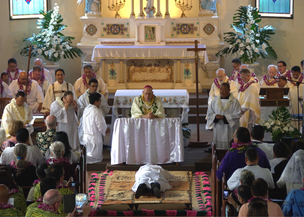 Five men from Leeward and Central Oahu were ordained in an evening liturgy Jan. 30 at the Co-Cathedral of St. Theresa in Honolulu.