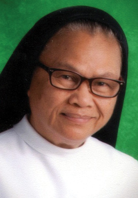 Sister Mary Candelaria was born on Feb. 7, 1948, to Maria Pinuela and Joaquin Perania in San Isidro, Zarraga, Iloilo City in the Philippines, the 10th of 11 children. Her father was a farmer and her mother a housekeeper. As a child, she earned the nicknamed “Cadillac” because of her fascination with their neighbor’s car. Whenever she heard it, she would run outside and say “That’s my car.”