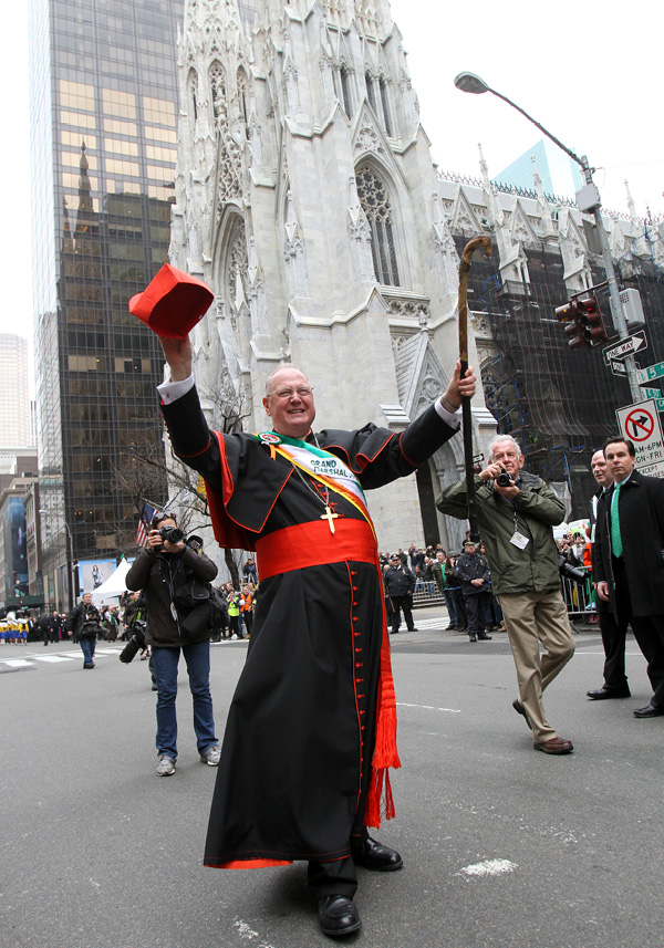 Earlier, he had been the main celebrant of a special noon Mass at the cathedral to honor St. Patrick, the fifth-century bishop, apostle of Ireland and patron saint of the New York Archdiocese.