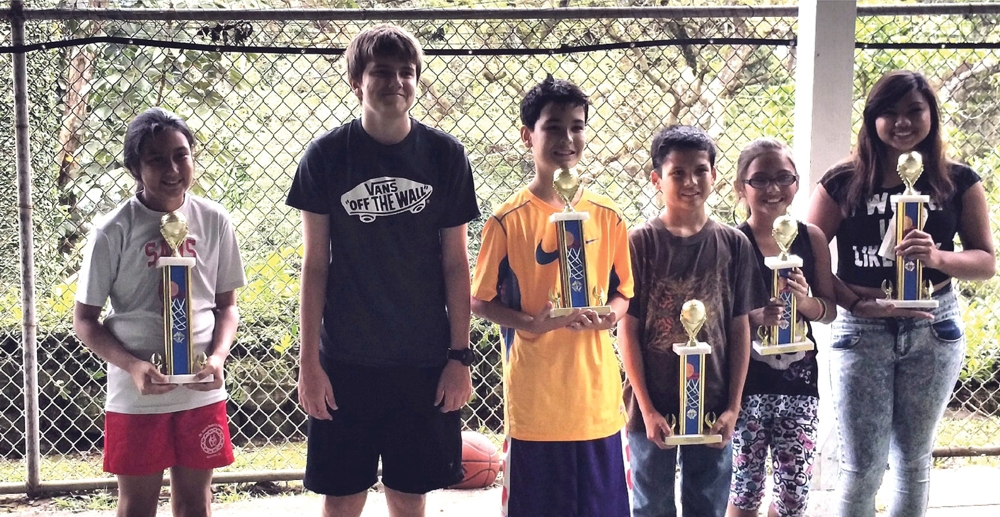 The Knights of Columbus 2014-2015 Earl McFarland Hawaii State Council Free-Throw Championships crowned six winners on March 14 at St. Stephen Diocesan Center. The top tossers were from St. Jude Parish Council 12733 in Makakilo and St. Ann Church Council 14620 in Kaneohe. Pictured, from left, are 9-year-old Tiani Souza (Council 14620), 12-year-old Joshua Willis (second place), 11-year-old Ethan Evans (Council 14620), 12-year-old Ty-Michael Madix (Council 12733), 10-year-old Aureana U. Peleras (Council 12733), and 14-year-old Mikayla Perkins (Council 12733). Missing from the photo is 13-year-old Agnes Brown (Council 14620). (Photo courtesy of the Knights of Columbus)