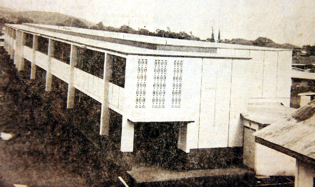 Some two years ago wind and rain did extensive damage to St. Ann’s wooden-framed school building. Since then temporary arrangements provided the classroom needs of the children of St. Ann’s. This Sunday at 2:00 p.m. the Most Reverend James J. Sweeney, Bishop of Honolulu, will bless the new sixteen classroom school building, which replaces the wooden structures that have served the parish children for many, many years.
