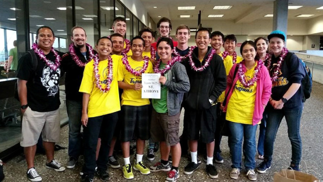 Team 5625 TrojanBots arrival to the Hawaiian Regional competition in March. (Photo courtesy of St. Anthony Junior-Senior High School)