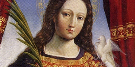 Eulalia was said to be born into a noble family in Merida, Spain. She was consecrated a virgin and displayed a maturity far beyond her years, which likely is what compelled her to flee from hiding and run to court, where she insulted Roman gods and the emperor. Her challenge to the authorities to martyr her was accepted, and at the moment of her death at the stake a white dove flew out of her mouth. Snow is said to have fallen after her death, covering her body. (www.catholicireland.net)