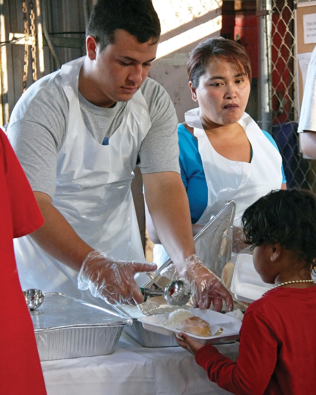 They fixed salad, prepared goodie bags and helped Bishop Larry Silva’s cook Judith Harkte transform 200 pounds of ground beef into hamburger stew.