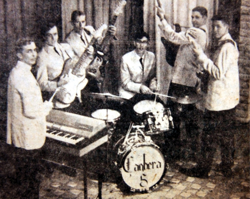 The “Canbera V” will be one of twenty groups performing at the Waikiki Shell May 29, in conjunction with the two-day Catholic Youth Convention. This evening they will participate with a number of other performing groups previewing the variety show. The three hour ‘preview’ will begin at 6 p.m. at Holiday Mart. Members of this group (left to right) Bernie Bernstein, Gary Walker, Glen Crowder, Gary Dunn, Vic and Vince Morine. (CYO Photo)