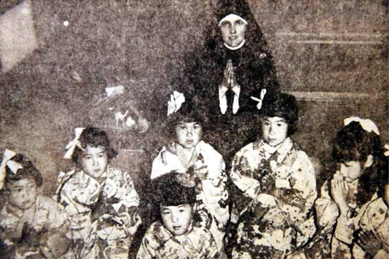 Thanksgiving Day in Japan is Kansha Bi. Though the name is different, the custom of giving thanks is the same the world over. Sister Martin Jerome of Maryknoll and her kimonoed friends join the rest of the country in saying “arigato,” thank you, for the many blessings, both spiritual and material, that have come to Japan. On this national holiday the emperor offers the new rice to the gods, and the Japanese people pray for continued prosperity. (NC photo)