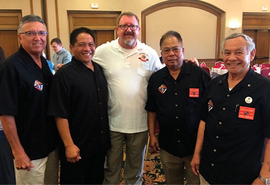 Knights of Columbus pose for a photo May 7 in Waipahu at the 18th annual fundraising banquet for the Aloha Pregnancy Care and Counseling Center in Kona. More than 300 attended. Former Lt. Gov. Duke Aiona said the opening prayer. His wife Vivian was the keynote speaker. The Knights’ state deputy Steve Lopez inspired the attendees with a talk about the Knights’ mission to buy an ultrasound machine for the Aloha Pregnancy Center as an added service for expectant women. (Photo courtesy of Cameron Datanagan)