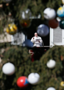Pope Francis leads the Angelus from his studio overlooking St. Peter’s Square at the Vatican Jan. 6, the feast of the Epiphany.