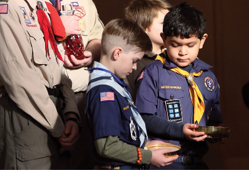 Cub Scouts prepare to participate in the presentation of the gifts during a Mass marking Scout Sunday at St. Joseph Church in Kings Park, N.Y., Feb. 5. (CNS photo/Gregory A. Shemitz)