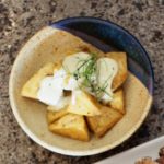 Peel the breadfruit (ulu). Cut into chunks in uniform sizes (about ¾-inch or 1-inch pieces). Bring ulu up to a boil, starting in cold salted water. Simmer for 3-5 minutes. Let ulu sit in hot water for a few more minutes or until ulu is tender. Strain and cool. Heat up a sauté pan and add olive oil. Brown the ulu and finish with butter, salt and pepper. Yields 4 portions.