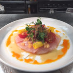 Hawaiian Kampachi Sashimi with Yuzu Ewa Melon, Pickled Mango, Ho Farms Tomato Sambal, Green Papaya Salad