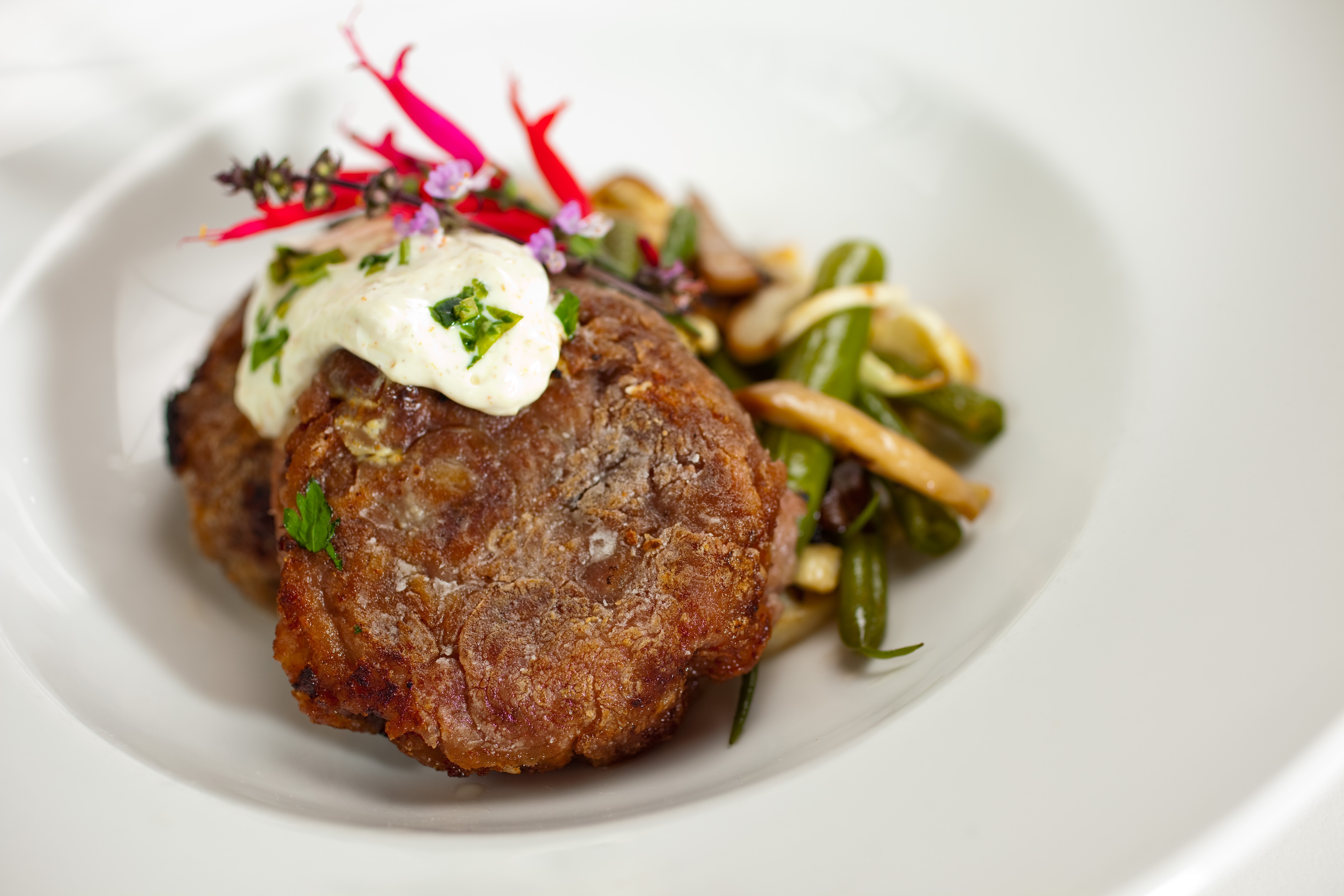 Steam taro in water and salt until soft. Sweat onions and garlic together in a sauté pan. Put the taro through a food mill and add the onion/garlic mixture, jalapeños and olive oil. Blend in a food mixer until smooth. Finish with salt and pepper, adjusting seasoning if necessary. Create round “cake”-sized portions and sear them as desired.