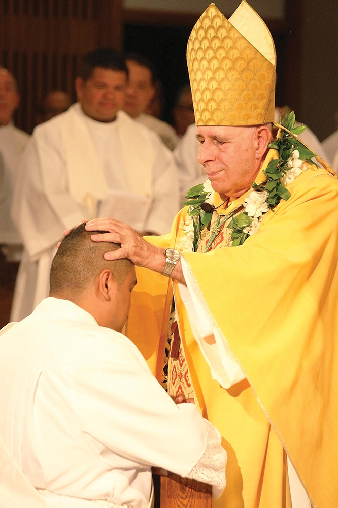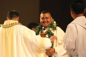 Bishop Larry Silva ordained Kalihi-bred Alfred Guerrero a priest May 19 at his home parish of the Co-Cathedral of St. Theresa in a solemn Mass that celebrated the sacredness, the unique character and the fraternity of the Catholic priesthood.