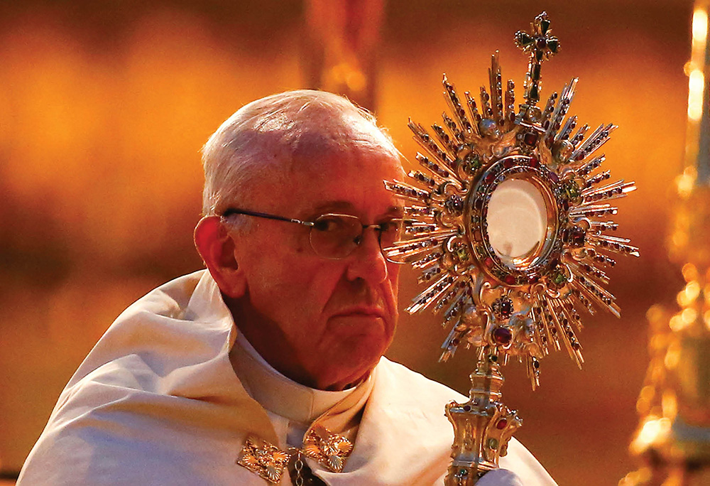 Pope Francis holds a monstrance on the feast of Corpus Christi June 18 at Rome’s Basilica of St. Mary Major. (CNS/Tony Gentile, Reuters)