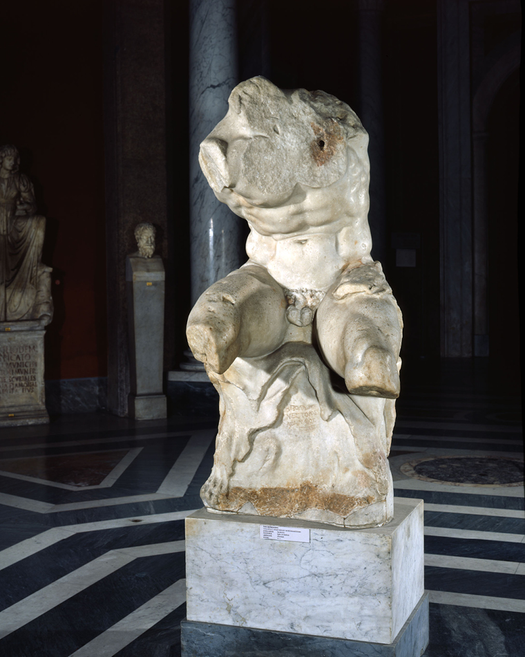 “Belvedere Torso,” a broken marble figure from around the time of Christ: Michelangelo refused a papal request to “repair” it, believing it beautiful enough to be a model for many Sistine Chapel figures. (CNS photo/Vatican Museums)