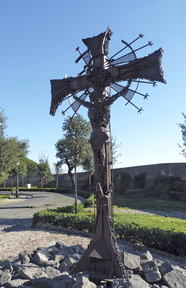 After the cardinal was elected pope, he and Marmo kept in touch, with Marmo creating a crucified “Christ the Worker” and “Our Lady of Lujan” for the pope. Now in the Vatican Gardens, the two pieces were built with scrap metal culled from junk piles at the papal summer villa and farm in Castel Gandolfo.