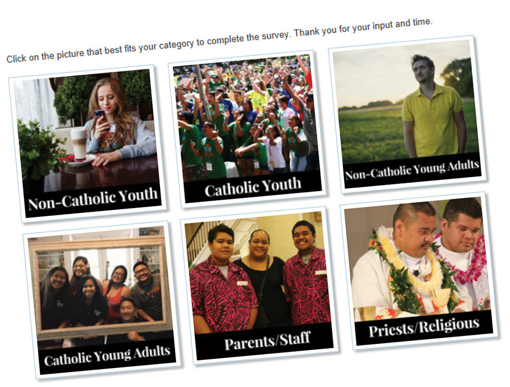 The Diocese of Honolulu’s Youth and Young Adult Ministry has made the original 53-question survey easier to use, shortening it and breaking it down by age and category of responder. Go to www.catholichawaii.org/synod2018.