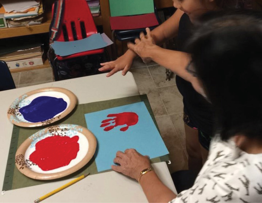 A small classroom inside Sts. Peter and Paul Parish in Honolulu was filled with chatter as the kindergarten and first grade vacation Bible school class worked on their arts and crafts. One little girl squealed and giggled as she dipped her hand into cold blue paint. Her classmates “oohed” in awe as the head teacher Bernadette Lopez held up the hand printed poster she made.