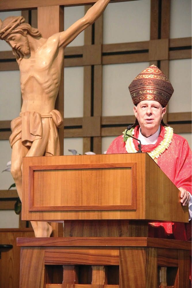 The Annual Mass of the Holy Spirit, this year held at St. Ann Church in Kaneohe Aug. 17, provided Island Catholic school educators and staff a moment of prayer and reflection at the start of the new school year. Bishop Larry Silva was the main celebrant of the liturgy. The morning of events, organized by the Hawaii Catholic Schools office, included a keynote address and opportunities for fellowship over food and refreshments. (HCH photos | Darlene Dela Cruz)