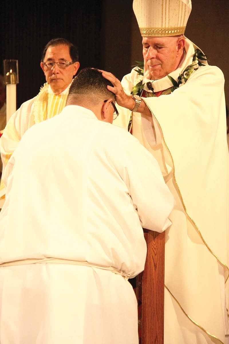 In a glorious evening ceremony celebrating the Feast of the Assumption of the Blessed Virgin Mary in Honolulu’s Co-Cathedral of St. Theresa, Bishop Larry Silva ordained William “Pila” Tulua a deacon.