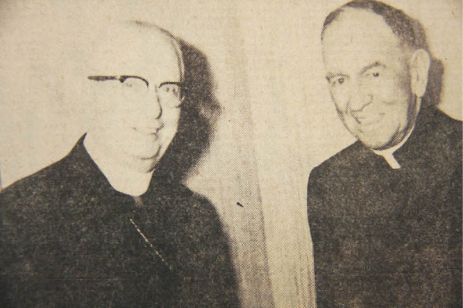 Most Reverend James J. Sweeney, Bishop of Honolulu, visited with the Most Reverend Robert Lucey, Archbishop of San Antonio, at the Royal Hawaiian Hotel on Tuesday. The archbishop was one of twenty-two observers returning from Vietnam, where they witnessed the recent presidential election. The archbishop was pleased to renew the friendship and their conversation centered around problems of the Church in the U.S., especially in the second largest state of Texas and the second smallest state of Hawaii. Alaska and Rhode Island are claiming the largest and smallest honors.