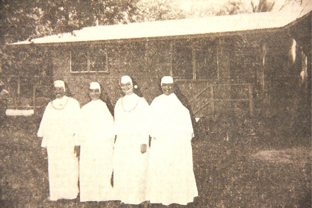 Four Holy Family Sisters stand near the “cottage” built at Kamalo, Molokai by the people there for the nuns. The nuns will commute weekly to and from Molokai for religious instructions in both parishes. Pictured near the cottage are (left to right) Sister Ancilla, Sister Ruth, Sister Joanna the superior, and Sister Christopher.