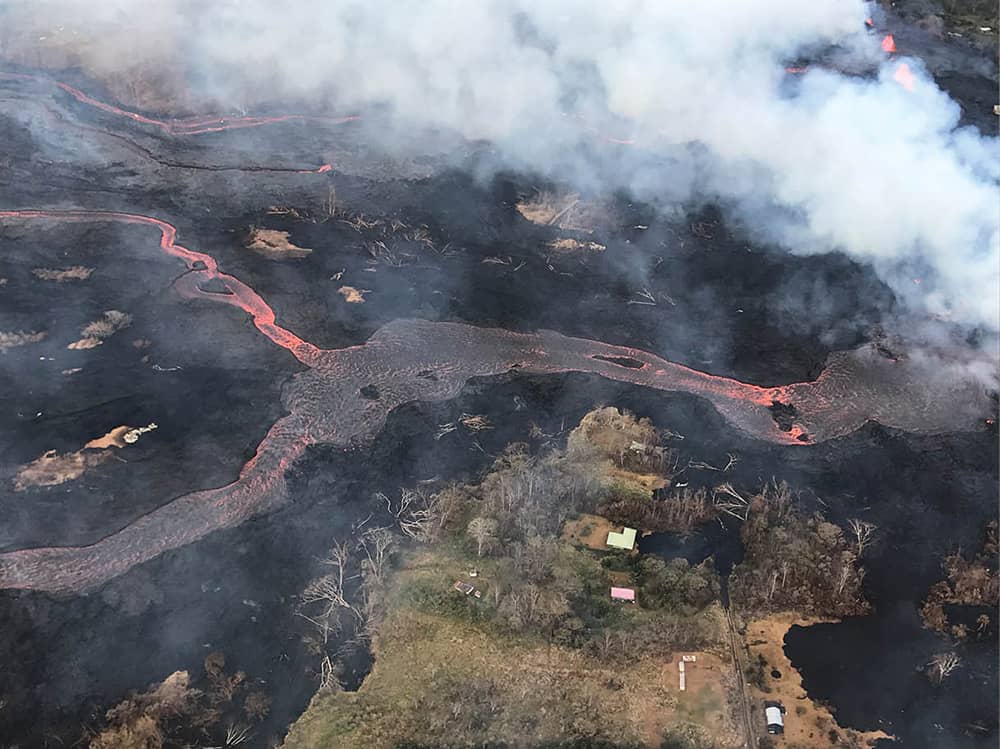 According to Hawaii County Civil Defense, as of May 28, 82 structures already have been destroyed by lava in this latest outflow from Kilauea Volcano, erupting continuously since 1983. Lava so far has covered more than 2,223 acres.
