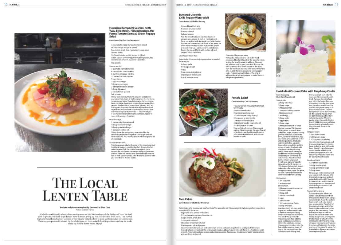 Dela Cruz, who was the Hawaii Catholic Herald’s reporter/photographer from 2010 until this March, also won first place for “Best Layout of an Article or Column” in the same circulation category for “The Local Lenten Table.” The judge noted, “This layout’s simplicity and use of white space is well done.”